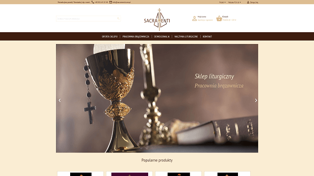 Przedmioty liturgiczne wytwarzane w pracowni brązowniczej przez firmę Sacramenti, sprzedawane w korzystnych cenach to świetna okazja, aby nabyć jakościowe i piękne dewocjonalia, ornaty liturgiczne, monstrancje, świeczniki i wiele innych naczyń wykorzystywanych w trakcie nabożeństw i innych uroczystości w Kościele Katolickim.