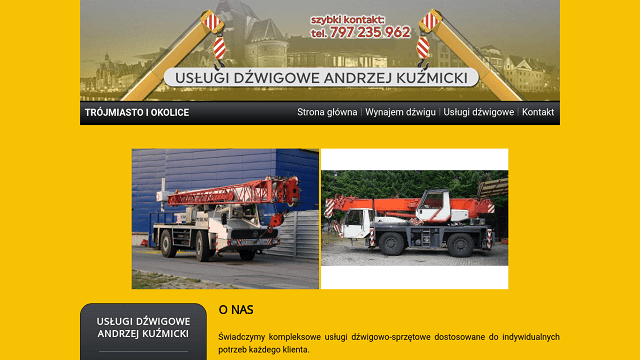 Jako renomowany dostawca usług dźwigowych w Trójmieście, rzetelna firma z wieloletnim doświadczeniem wciąż zaskakuje klientów, rozszerzając proponowaną ofertę między innymi o podnośniki koszowe lub kompleksowe usługi dźwigowe, obejmujące nie tylko wynajem urządzeń, ale także operowanie nimi na placu budowy. Tym samym o nic nie trzeba się martwić, ponieważ wszystkim zajmą się fachowcy.